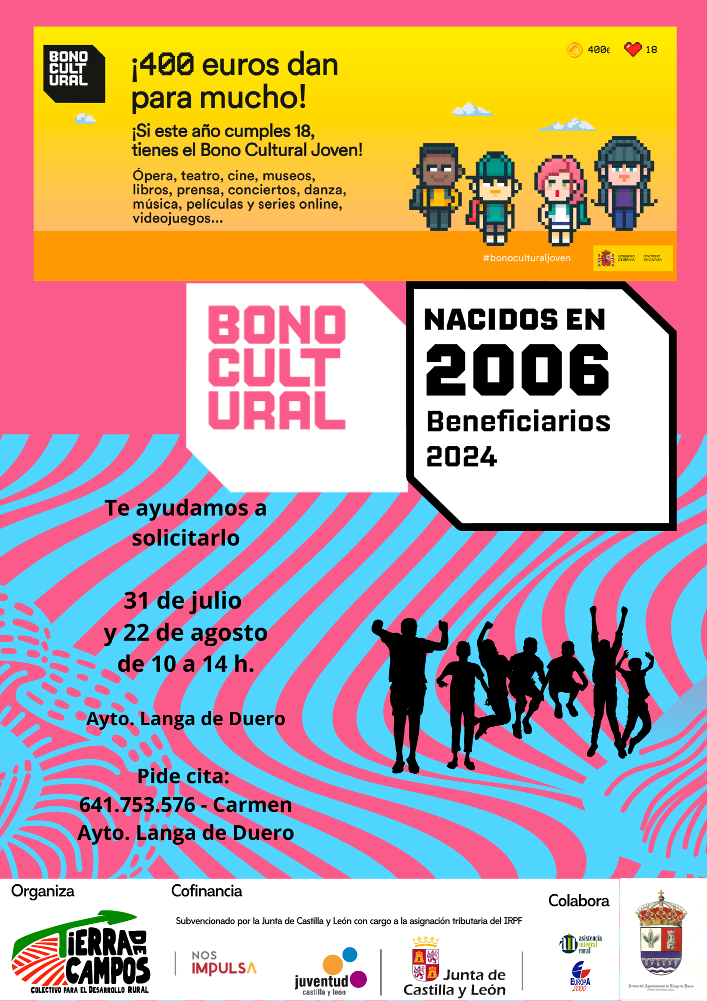 De Viernes, 2 de Agosto de 2024 hasta Jueves, 22 de Agosto de 2024 Descargas bono_cultural_joven_langa_de_duero.pdf (1.92 MB) Galería de Imágenes Comparte esta Página